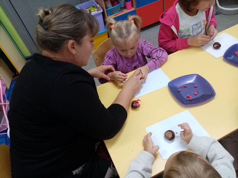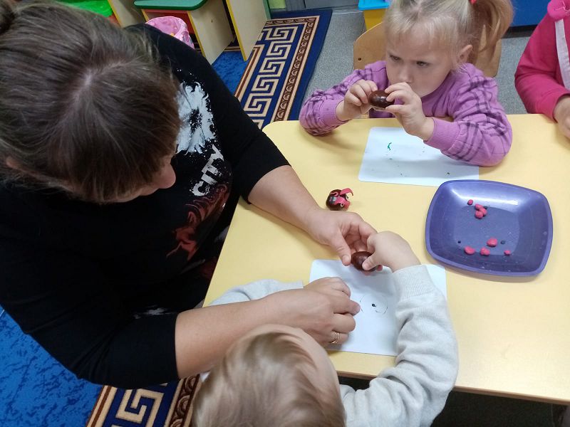 - Лепка: «Грибы», «Ежик» (с использованием природного материала).