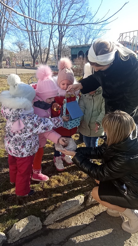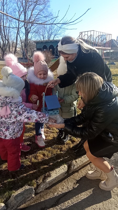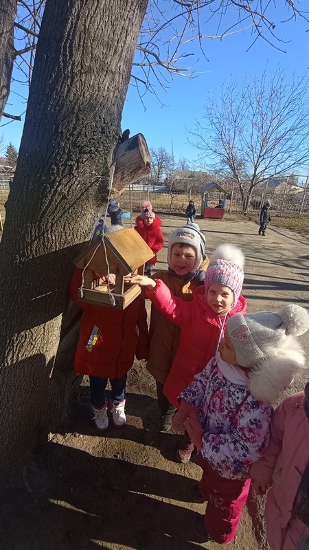 Дети через беседы, познавательные занятия и наблюдения узнают о различных видах птиц своей местности, учатся заботиться о пернатых, испытывают радость от осознания того, что, подкармливая птиц, можно спасти их от гибели. Поэтому мы с детьми ежегодно проводим акцию «Покормите птиц зимой». В рамках реализации акции родители с детьми изготовили материала кормушки для птиц. У каждого они получились разные, но сделаны с душой, с теплом, кормушки были развешаны на нашем участке и организована регулярная подкормка птиц.