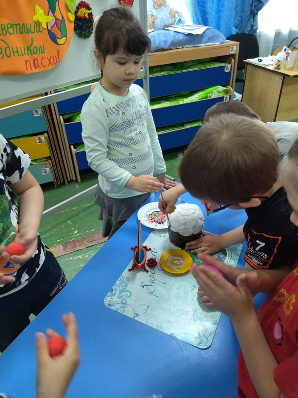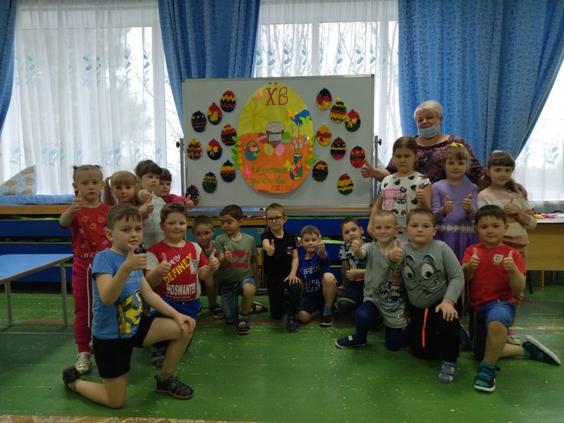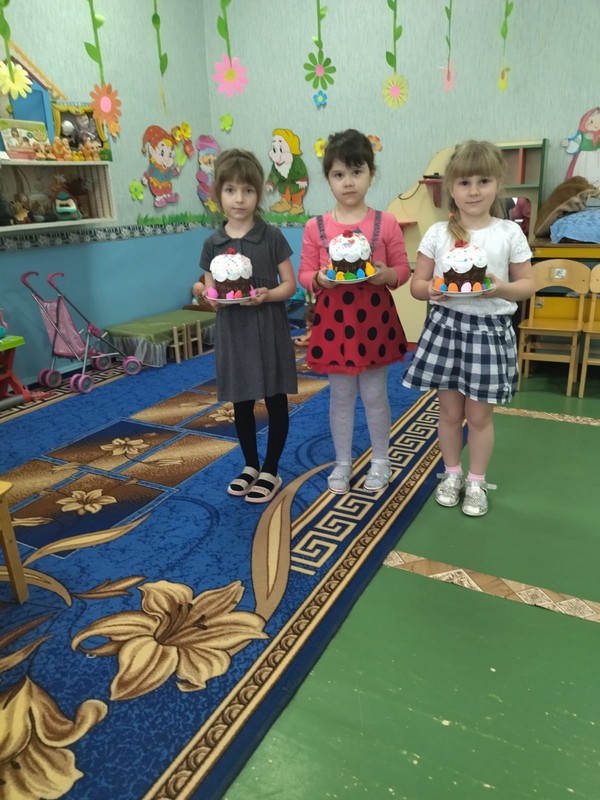 В старшей группе «Солнышки» МБДОУ «Аленушка» воспитатель Лебедева А.Н. и ее воспитанники стали готовиться к празднованию за неделю. Провели беседы на тему «Как праздновали Пасху на Руси», «Христово Воскресенье – праздник и торжество», «Почему на Пасху красят яйца». На занятиях по изодеятельности с помощью техники салфеточная аппликация дети сделали свои именные пасхальные, расписные яички и смастерили открытки к Пасхе. Ежедневно читали стихи о празднике Пасхи, рассматривали картины и иллюстрации в книгах, открытки. На прогулке играли в новые подвижные игры «Медком или сахарком», катали пластмассовые и деревянные яйца с горки. В группе была оформлена выставка «С днем Великой Пасхи», где представлены поделки, изготовленные детьми.